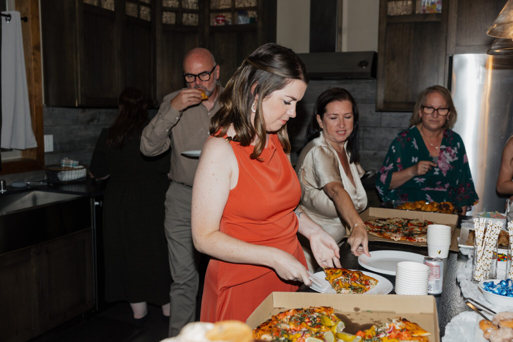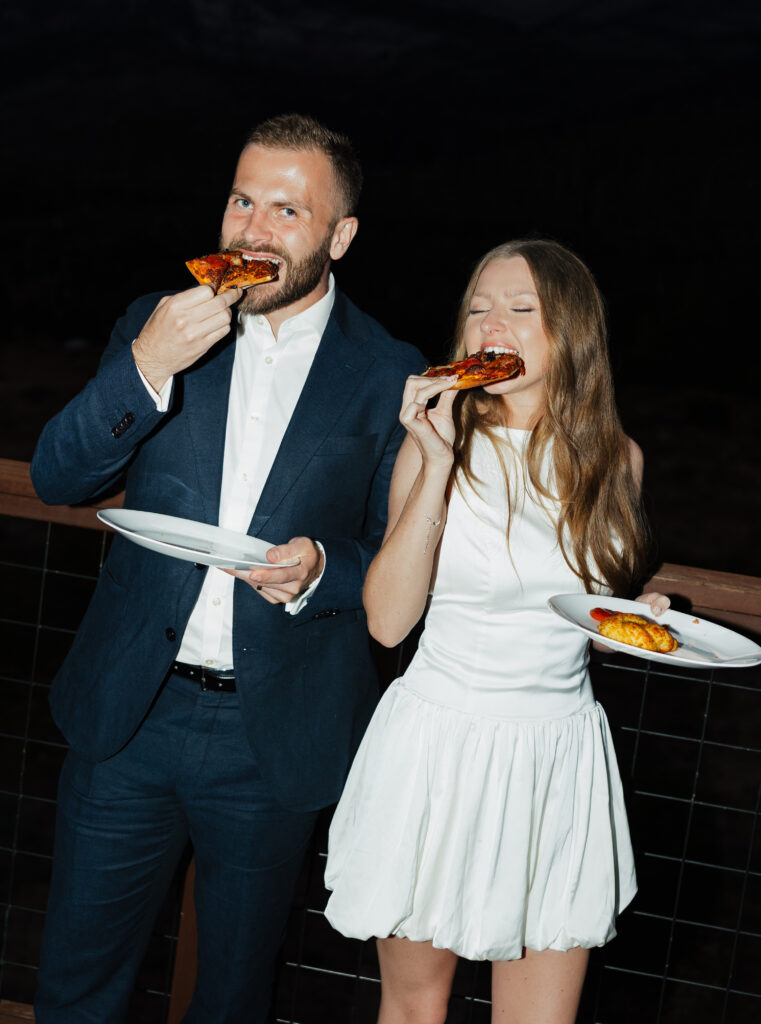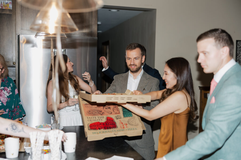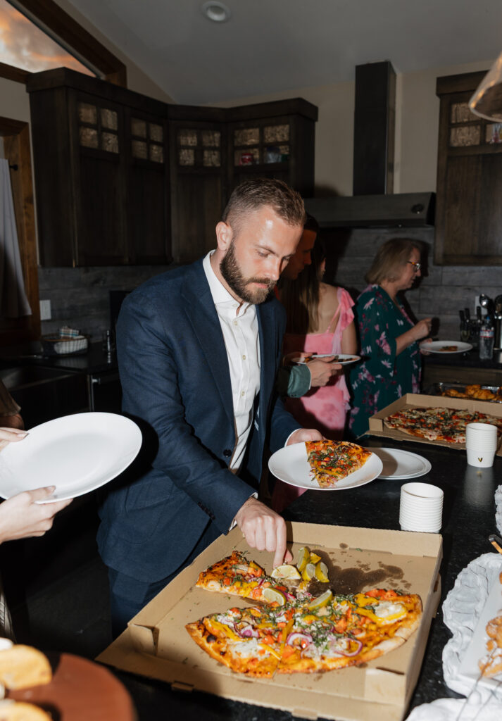 They ended the night with pizza back at their cabin airbnb that was wedged up against the mountains/trees.